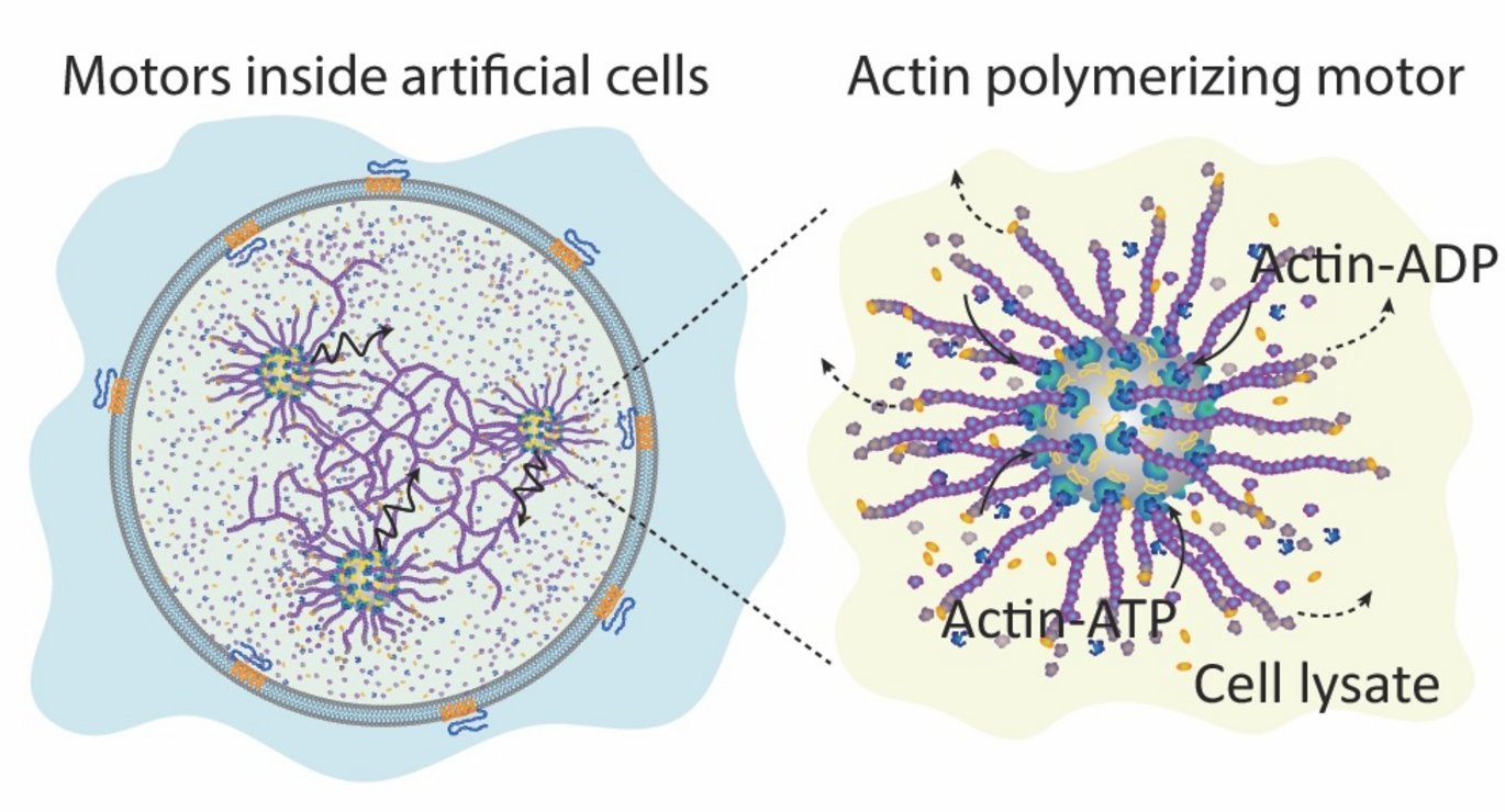 AUNAB members Assistant Prof. Miguel Ramos Docampo's and Prof. Brigitte Stadler's effort to engineered artificial cells to form cytoskeleton-like networks using nanomotor-driven actin polymerization is published in ACS Nano. These hybrid vesicles merge active matter with synthetic biology to achieve life-like movement and self-organization inspired by Listeria’s actin-based propulsion.
