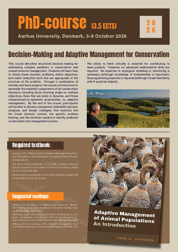 Aarhus University offers a M.Sc. course (10 ECTS) with focus on adaptive management of wildlife.