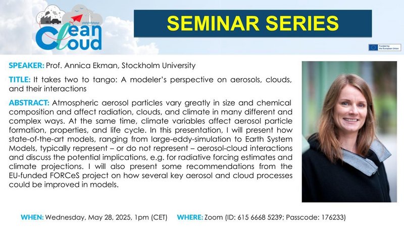 📡 As the world moves toward a post-fossil future, understanding how clouds respond to decreasing pollution is critical. Funded by the EU Horizon Europe programme, CleanCloud ACI united more than 20 top research institutions across #Europe to study how aerosol-cloud interactions (ACI) will evolve in this changing atmospheric landscape.