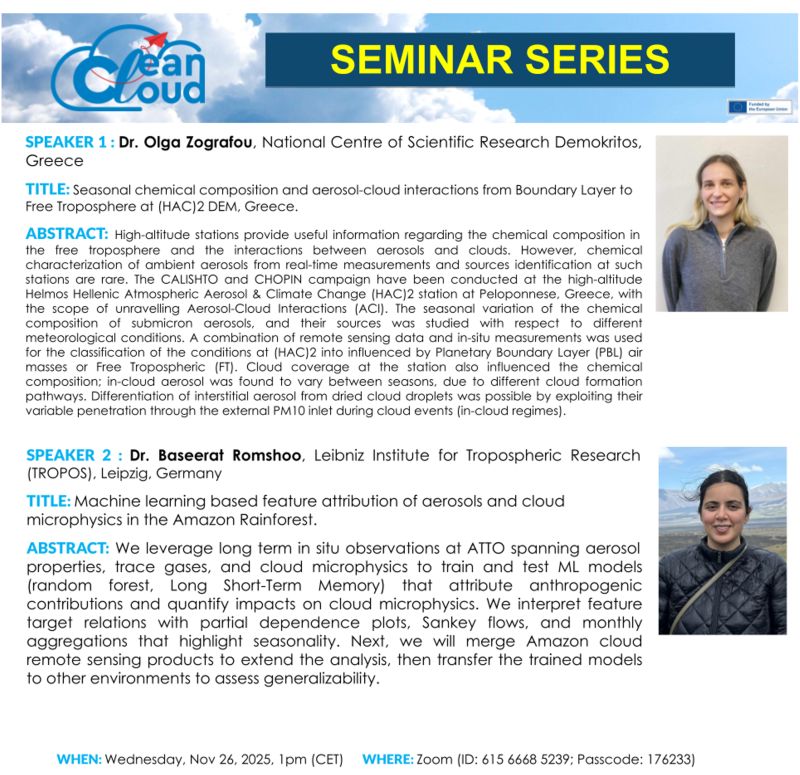 📡 As the world moves toward a post-fossil future, understanding how clouds respond to decreasing pollution is critical. Funded by the EU Horizon Europe programme, CleanCloud ACI united more than 20 top research institutions across #Europe to study how aerosol-cloud interactions (ACI) will evolve in this changing atmospheric landscape.