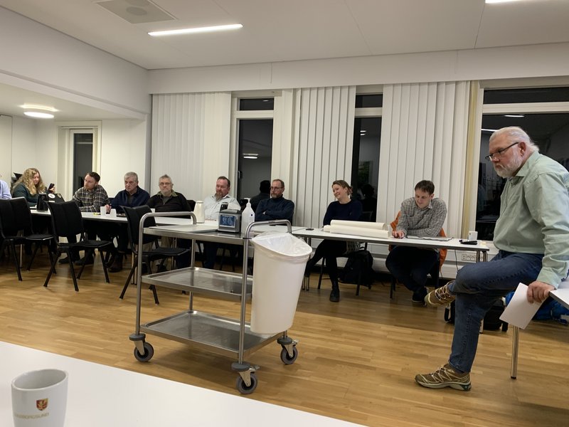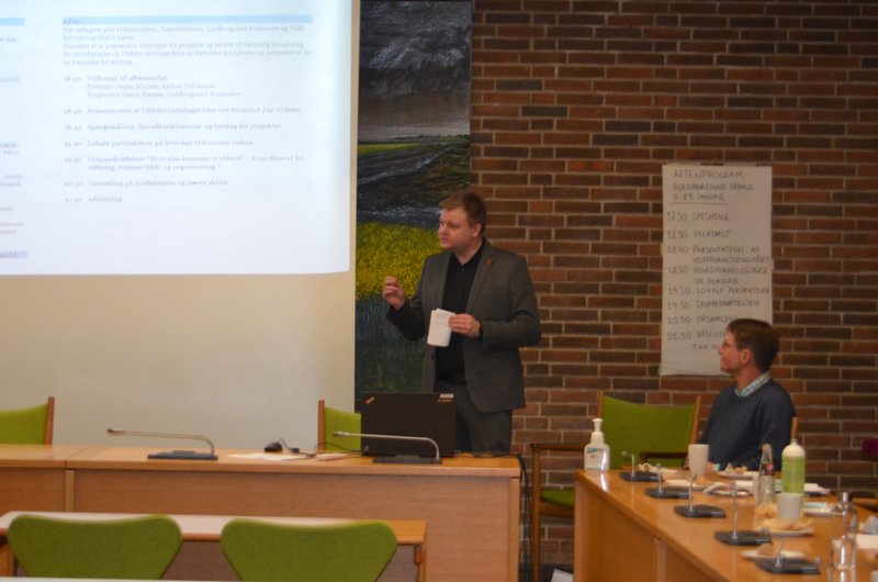 Jesper Madsen beskrev indledningsvis projektets baggrund og de forskellige faser. Den lokale deltager og landmand Jesper Tambour (JT) supplerede med baggrunden for hvorfor han som lokal gik ind i projektet da det i sin tid opstartede.