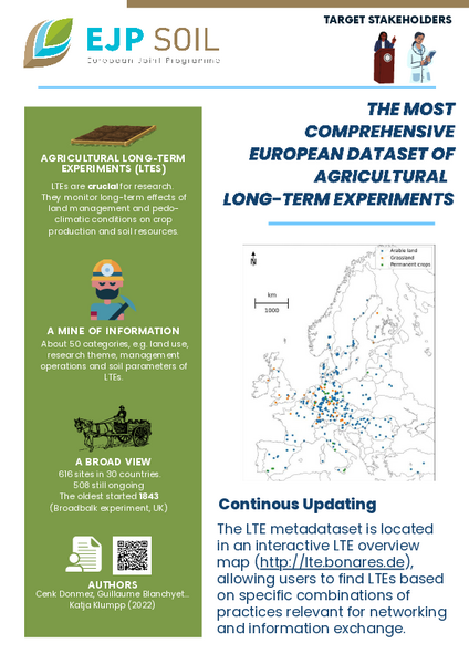 Agricultural Longterm Experiments (LTES) are crucial for research. They monitor long-term effects of land management and pedo- climatic conditions on crop production and soil resources.