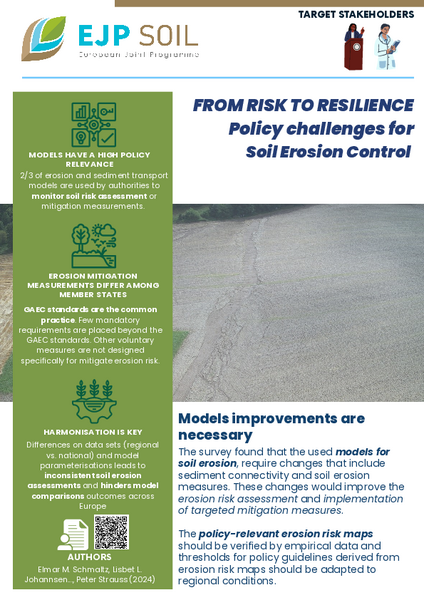 The survey found that the used models for soil erosion, require changes that include sediment connectivity and soil erosion measures. These changes would improve the erosion risk assessment and implementation of targeted mitigation measures.