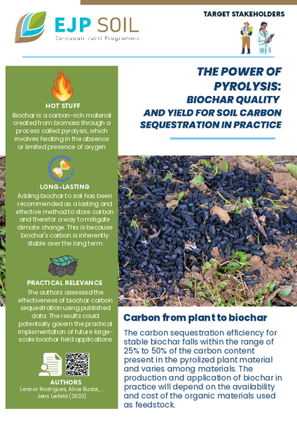 Biochar quality and yield for soil carbon sequestration in practice.