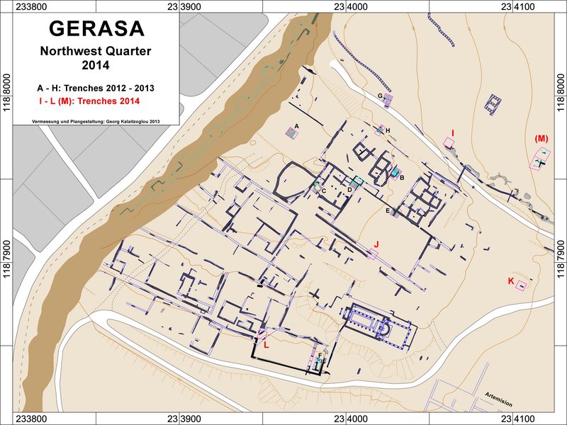 Following our survey campaign in 2011 and the excavation campaign in 2012 (see our 2011, 2012 and 2013 reports in Munjazaat) the subject of this year’s campaign was to further investigate particular archaeological remains in the northwest area of the city beginning west of the sanctuary of Artemis and stretching to the city wall.