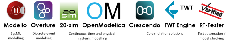 The following list describes the existing tools that will be linked in the INTO-CPS tool chain (their main features are summarised in the figure.