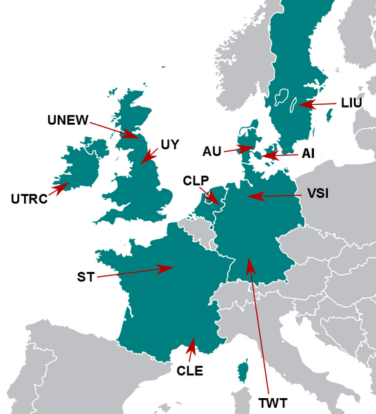 Distribution of INTO-CPS partners in Europe