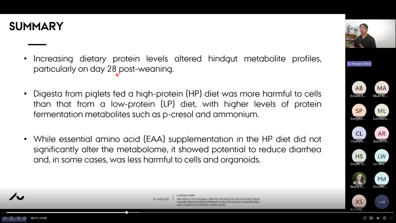 1️⃣ Li Hsuan Chen (PhD student, Aarhus University, Department of Animal and Veterinary Sciences) - The impact of microbial-derived metabolites on gut function in weaned piglets under different levels of dietary crude protein and a surplus of dietary amino acids