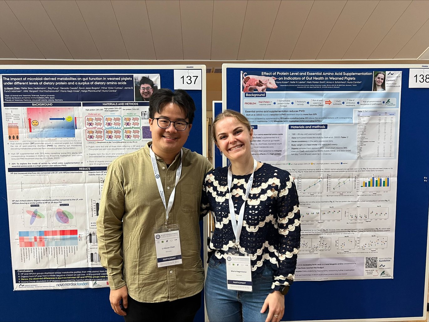 Both posters received strong interest from the audience. Maria especially enjoyed the lively discussions on EAAs, high-protein diets, and the mechanisms behind the diarrhea-reducing effect of supplementation.