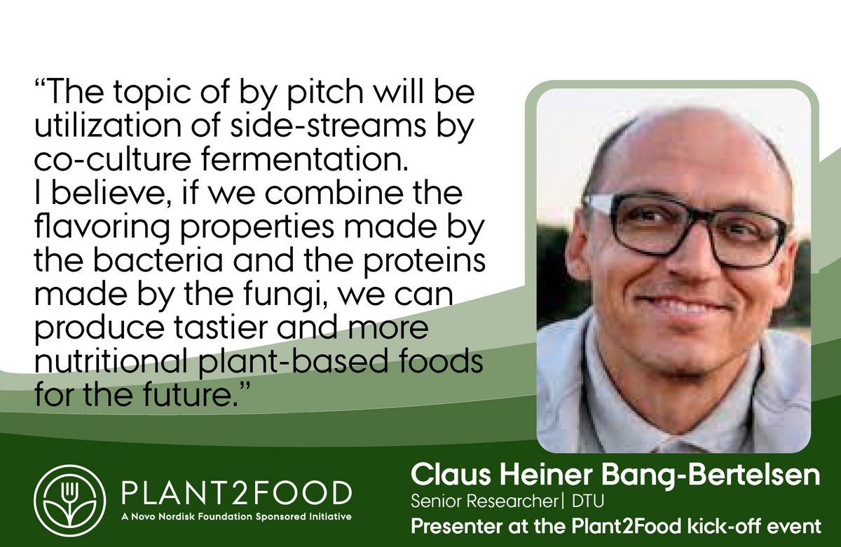 Claus Heiner Bang-Berthelsen from DTU is pitching this exact topic at the Plant2Food kick-off event 30 March. He is one of the seven pitch presenters sharing his view on the current challenges of the green transition of our diet - and how we can start investigating how to solve these challenges.