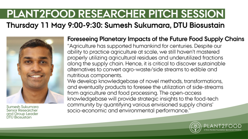 Sign up for Senior Researcher and Group Leader at DTU Biosustain, Sumesh Sukumara's pitch about 'Foreseeing Planetary Impacts of the Future Food Supply Chains'.