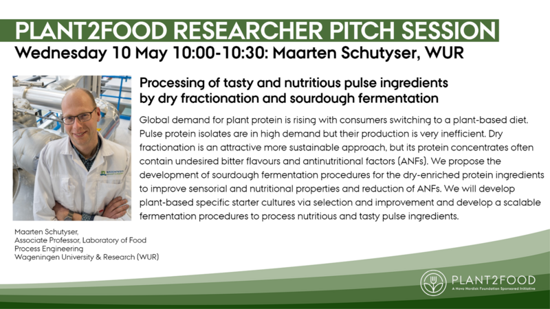 Sign up to listen in on Associate Professor Maarten Schutyser's pitch about 'Processing of tasty and nutritious pulse ingredients by dry fractionation and sourdough fermentation'