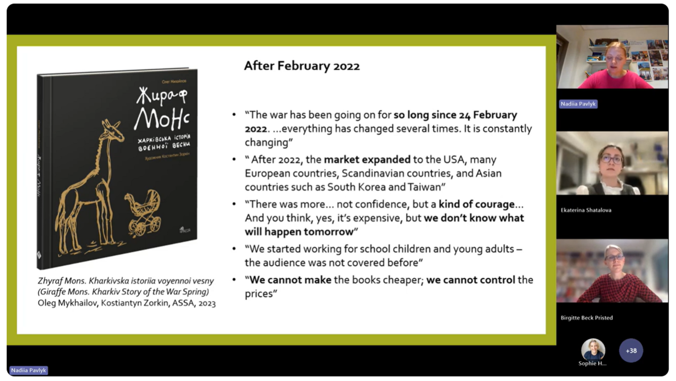 On December 11, 2025, the webinar “Children’s Books in the Russia-Ukraine War: The Role of Translations” took place as part of the series “Explorations in Translation for Children.” The series is co-organised by The Centre for Book Cultures and Publishing (University of Reading) in partnership with Outside in World, an organisation dedicated to promoting world literature and children’s books in translation.