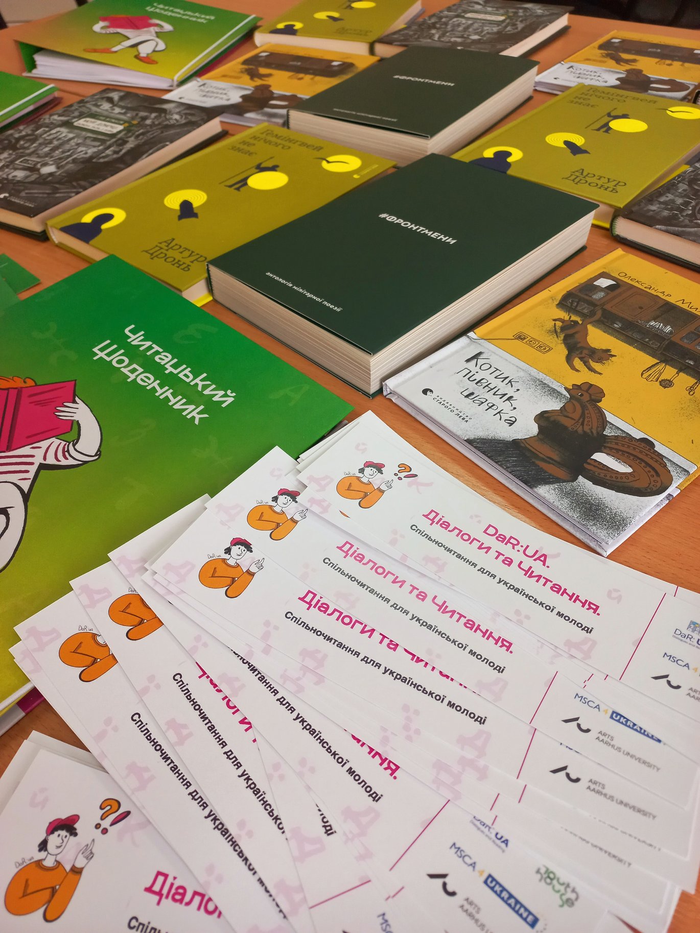 The set also includes four contemporary books about the war in Ukraine in different genres, offering diverse ways to approach complex experiences. In addition, participants received bookmarks featuring the project’s visual identity and brief information about the initiative. These materials are intended not only to support individual reading, but also to strengthen a sense of community and engagement in a shared dialogue.