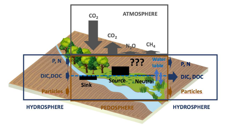 ReWet provides the infrastructure at ecosystem scale to study the effect of rewetting drained agricultural and forest peatlands on greenhouse gas emissions (CO2, CH4 and N2O) and fluxes of nutrients (P and N), dissolved organic and inorganic carbon (DIC, DOC), see figure below.