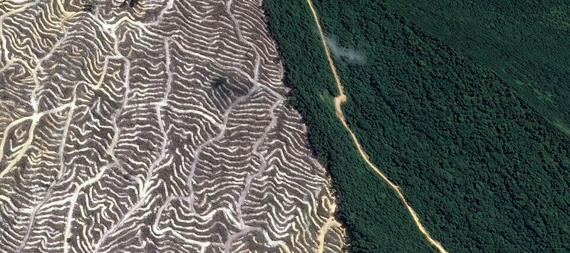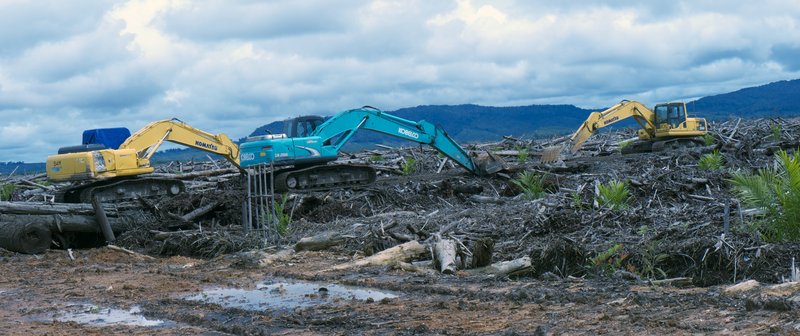 Clearing forest for palm oil plantation, Indonesian borderland