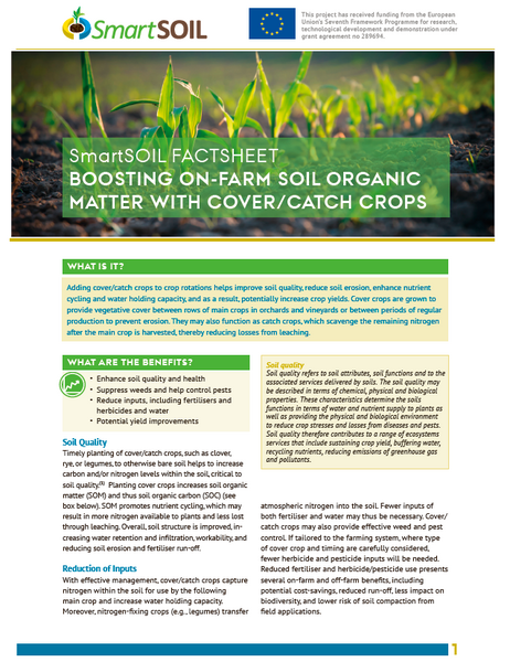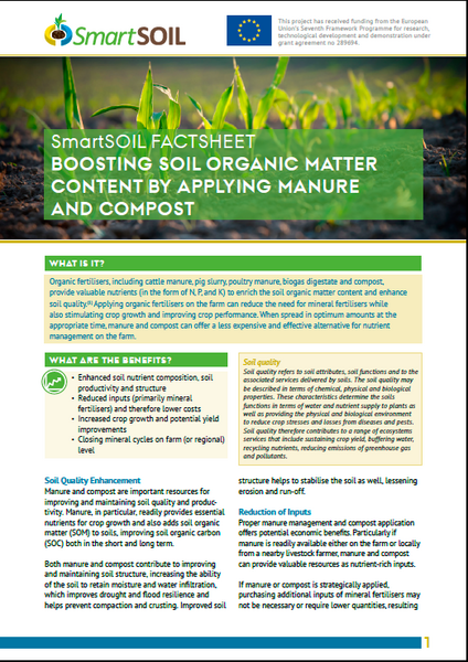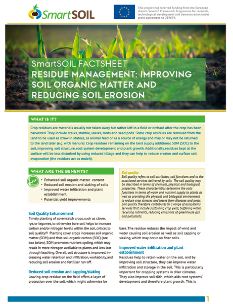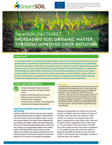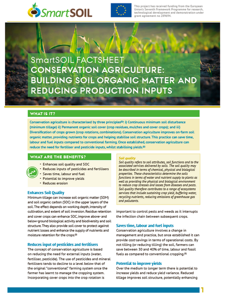 SmartSOIL has developing Fact sheets providing technical and economic information on five practices that promote good soil carbon management. These have been developed using scientific outputs from the project and in consultation with stakeholders. They are intended for use by advisers and farmers. the practices are: